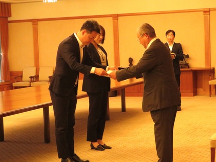 大阪市役所本庁舎にて、横山市長より大阪公立大学への寄附に対して、感謝状の贈呈を受けました。